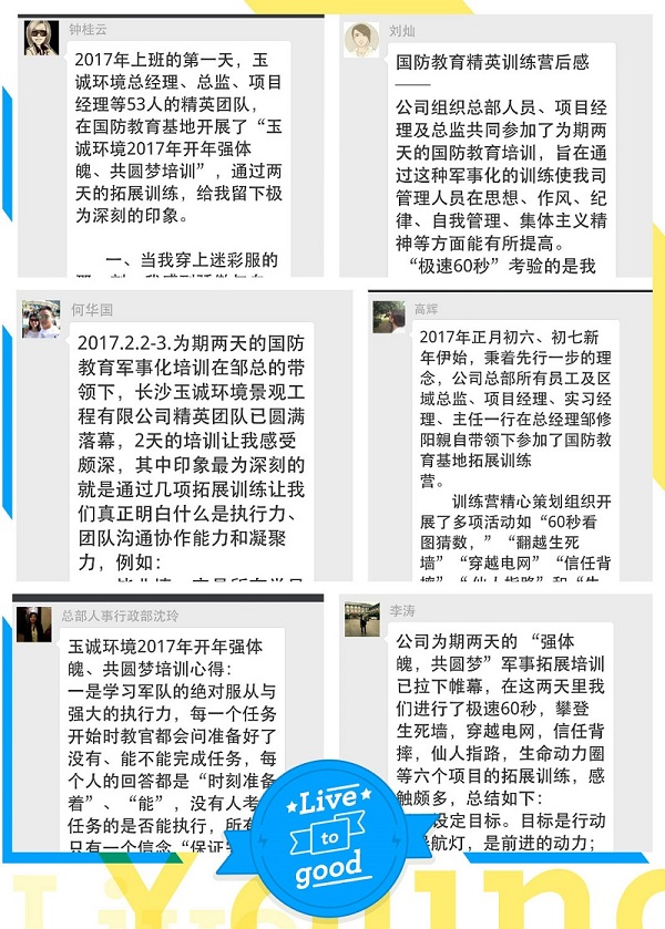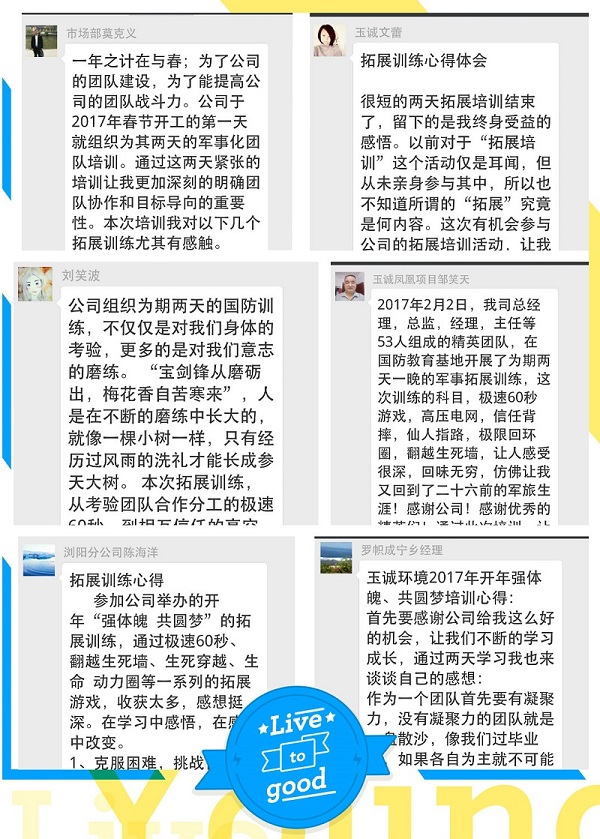 我為改變而來,這是每個訓練成員的初衷,沒錯,公司發展需要創新,團隊進取需要改變,人要進步需要學習。世界上最可怕的不是你不如別人而是比你強的人比你更努力,讓我們一起堅定的選擇努力,勇于脫變,深信????只要我們一起擼起袖子一起加油干,玉誠人的明天定會越來越幸福!